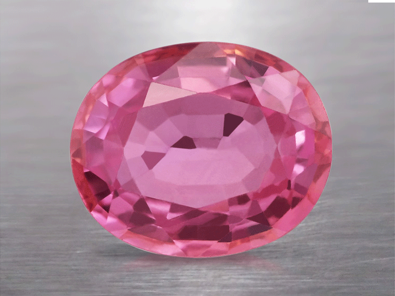 Sapphire màu hồng (Pink Sapphire) có các sắc thái từ nhạt đến hồng đậm, và màu hồng đậm hơn khi lượng Crôm trong viên đá tăng lên. Màu hồng càng đậm thì giá trị của Sapphire càng cao. Theo tiêu chuẩn của Viện Ngọc học Hoa Kỳ - GIA: độ bão hòa màu tối thiểu phải được đáp ứng để được gọi là Ruby - nếu không viên đá chỉ được gọi là Sapphire hồng.