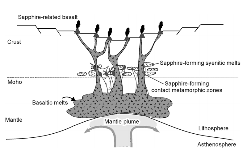 Sapphire được hình thành từ quá trình Magma Basalt thuộc các hoạt động núi lửa từ nhiều triệu năm trước, dưới độ sâu hàng chục đến hàng trăm km trong lòng trái đất.Tên gọi của Sapphire bắt nguồn từ "SAPPHEIROS” trong tiếng Hy Lạp có nghĩa là màu xanh da trời. Một số người tin rằng Sapphire có mối liên hệ và xuất phát từ Sao Thổ trong tiếng Phạn (Sapphire - Saturn Planetary Mantra)Sapphire thường có màu xanh lam – do đó nó thường được gọi là Lam Ngọc, tuy nhiên Sapphire còn có các màu khác như: vàng, tím, cam và xanh lá cây.. gọi là Fancy Color Sapphire. Một số ít có nhiều màu gọi là Parti Sapphires. Đặc biệt với viên đá có màu đỏ được gọi là Ruby (Hồng Ngọc) chứ không gọi là Sapphire.
